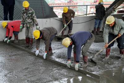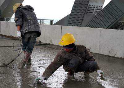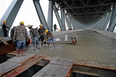 4月23日15时36分,随着一斗混凝土将主桥最后一块道砟槽板盖住,施工者迅速抹平、振捣、收浆——黄冈长江大桥主桥铁路面防水层全部施工完成,标志着黄冈长江大桥主桥铁路桥面系施工顺利完成。