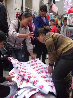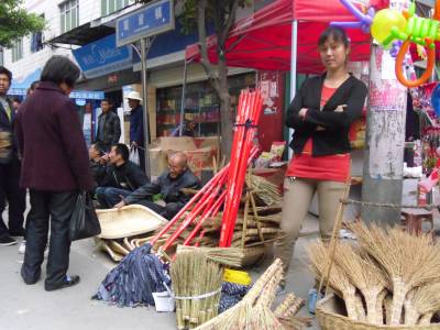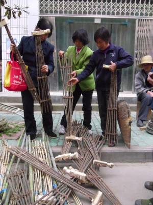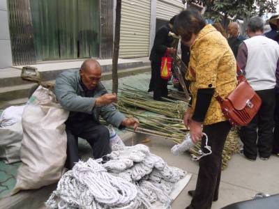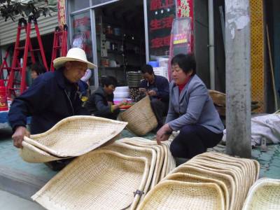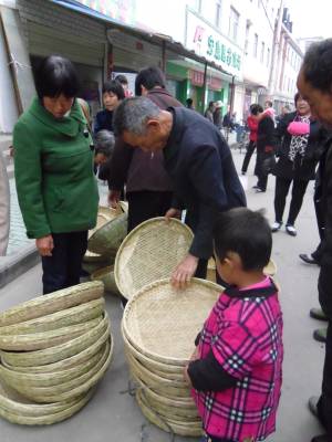 民间艺人制作的簸箕、筛子、背篓、篮子、草鞋等农副产品深受农民朋友的喜爱,也是他们生产生活中必不可少的用品。据卖簸箕的王师傅介绍,今天上午就买了50把,每把80元。他既买簸箕又免费帮乡亲们修理簸箕,所以他今天的生意异常火爆。还有一位农民大哥,将自己亲手制作的酒罄子(农村专门制作白酒用的器皿)拉到集上去卖,据了解,一个酒罄子卖价200多元。 范正群