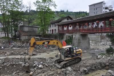 4月22日,在恩施市太阳河乡双河岭村复胜河中小河流域治理施工现场,工人们正在紧张施工,处处一片繁忙景象。