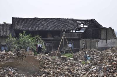 4月25日,湖北省丹江口市浪河老街已经拆迁得只剩下不多的几幢房子了。