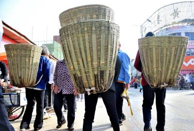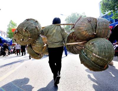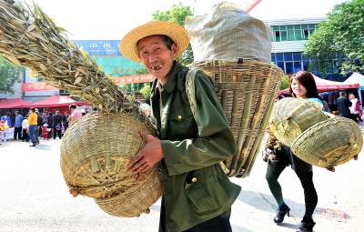 竹编农具走俏三省 4月27日,鄂、豫、陕三省农民在赶完郧县谭山镇一年一度的传统庙会后,带着选购的竹编农具回家。此次庙会呈现出文化大融合、客商大集中、农民大赶集、物资大交流的盛会。谭山庙会是我省重点边贸口子镇物贸交流会,云集的商贾带动了边贸经济的发展。