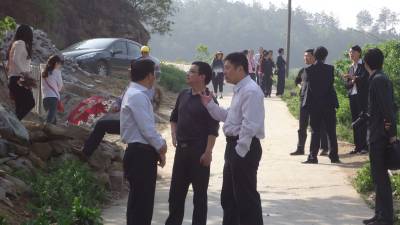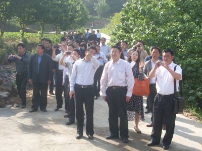 会前,与会人员实地参观了樱桃沟村建设现场,中国乡村规划设计院院长孙君结合樱桃沟村建设情况做指导性培训。(陈涛摄)