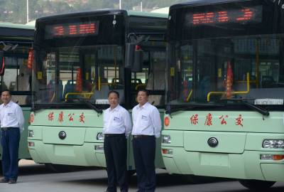 当日,保康县隆重举行城区公交车开通仪式。开通县城区公交车,是保康县人民期盼已久的梦想。为了方便市民出行,解决群众出行难,今年,保康县把开通城区公交车纳入为民办理的“十件实事”,投资220万元购买6辆无人售票公交车,在城区建设28个候车站亭,先期开通一号线,运行线路8公里。它的开通,标志着保康县在建设文明县城、完善城市功能上又向前迈进了一大步。这一便民利民的好事、实事,受到老百姓的一致拥护。(本报视界网 陈泉霖 摄)
