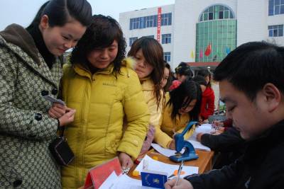 1月29日,应城计生服务人员正在三合镇为返乡育龄人员办理《流动人口婚育证》。春节将至,针对大量外出务工人员集中返乡这一现状,应城市计生服务部门把春节前后作为流动人口优质服务活动月,开展了《流动人口婚育证》办理、避孕药具发放、生殖健康检查等一系列的计生服务活动,确保为广大返乡育龄人员提供优质的计生服务。据统计,该市流动人口优质服务活动现场为返乡农民工办理《流动人口婚育证》2000份,免费发放避孕药具500余盒,开展生殖健康检查1000人次,发放计生宣传资料2000余份。(通讯员丁艳红)