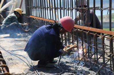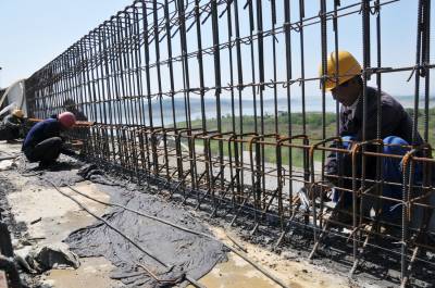 五一节小长假期间,南水北调中线工程丹江囗水库大坝上的员工还在安装设备和坝上北岸围堤上最后20米防浪墙施工,该防浪墙高2米,长1200多米,工人师傅介绍三天可完成防浪墙的最后建设。 夲报视界网周家山 摄