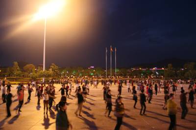 4月30日晚,人们在竹溪县公园广场健身。近几年,竹溪县丰富广大群众的业余文化生活、满足群众的体育健身需求,以相对集中的乡、镇政府及村委会所在地因地制宜地建设群众健身场所,满足群众健身需求,现已建成大小健身场所100余个,每到夜幕,这些健身场便成为城乡居民翩翩起舞的乐园。