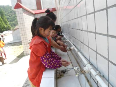 3日,郧县五峰乡德勤希望小学的学生们在水龙头旁洗手。连日来,该校积极防控传染病,向学生讲解正确的“五步洗手法”的卫生常识,教育他们从小养成勤用流水洗手、讲究个人卫生的好习惯,严防H7N9进校园。 (视界网 周学山 )