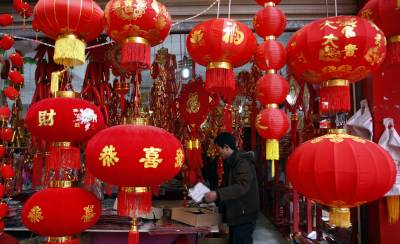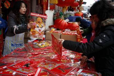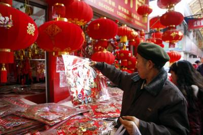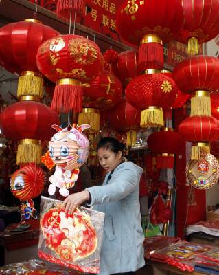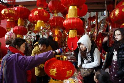 红红火火迎新年2010年2月11日拍摄的市民挑选大红灯笼。再过两天就是新春佳节,湖北省宜昌市民纷纷走上市场,选购春联、红灯笼等吉祥物装饰家庭,红红火火的迎接虎年的到来。文振效