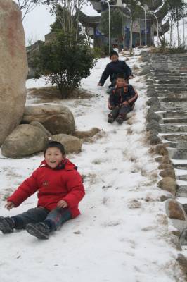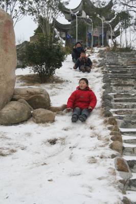 2月11日,随州大地银妆素裹,披上最圣洁的外衣。冬日的严寒挡不住雪天的乐趣,看小孩们在随州神农公园里溜冰,留下美好的新春笑语。(本报视界网徐军国摄)
