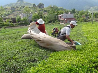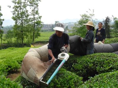 据了解,该镇有茶园11万多亩,每逢茶叶盛产期,茶农便遭遇采摘难题。许多茶农瞄准商机,购进采茶机,在搞好自家茶园管理的同时,既帮助种茶大户解决采摘难题,也给自己增收不少。目前,该镇这种业余的采茶队有近50支,而且十分吃香,每天上门求助的茶农络绎不绝。采摘的行情是每公斤0.6元,一部采茶机一天可以采摘1000多公斤,可创收入600多元。