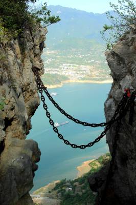 链子崖景区位于位于宜昌秭归县屈原镇长江南岸,距城区68公里,屹立于兵书宝剑峡和牛肝马肺峡之间,因“链子锁崖”而得名。链子崖是世界岩崩治理地质的奇观,大自然留给人类的天然地质博物馆,被地质泰斗李四光先生定为“世界地质研究的化石”。链子崖曾是一座布满裂纹的悬岩绝壁,最大的裂缝有5米多宽、700米深,直接威胁长江中下游群众的生命财产安全,为彻底治理链子崖地质灾害,国家首次动用了国务院总理基金4600万元,采用最先进的地质灾害治理技术,经过四年的治理,智慧的人们终于用整体锚固的方式实现了千钧铁链锁住链子崖的梦想。
