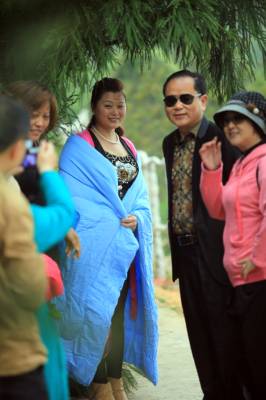 火红的五月,来自五湖四海的游客在这里凉得直哆嗦还喊好,有的背着背包取暖,有的披着薄被,有的身着棉衣,穿行在杜鹃长廊,不守规矩的山风还不时撩起美女的裙纱和头发,一道别致的风景就这样展现。