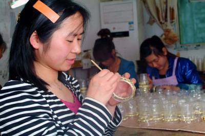 5月6日,来凤县大河镇龙凤饰品厂的工人正在加工手镯等工艺品,赶制北京等地的客人订单。2011年,该镇白果树村村民佘协银与佘草山在镇财经所的帮助下,合伙投资15万元创办饰品加工厂,生产手镯、项链、耳环等手工艺品,产品远销北京等地旅游商品市场,年创产值100万元,吸纳了周边10余名农民在家门口就业。近几年来,来凤县财政部门切实落实国家惠农政策,并推出财政贴息小额贷款帮助返乡农民创业,催生了一大批小微企业,有力地推动了当地经济发展。本报视界网 张友胜摄