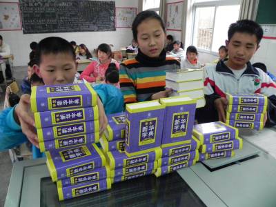 回收问题《学生新华字典》 5月9日,十堰市郧县青曲镇初级中学将免费发放的问题《学生新华字典》回收。据悉,湖北教育厅为农村中小学采购320万册《学生新华字典》,日前被曝存在严重质量问题,这种版本的《学生新华字典》在注音、字形、释义、例句、部首、英汉对照以及标点符号等存在诸多错误,差错率超过万分之二十。为避免学生学习受到影响,该县各中小学校立即收回已发放的《学生新华字典》,并上交有关部门销毁。 (本报视界网 张传郧 摄)