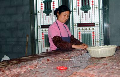 图文:“流动车间”搬进农家 5月9日,湖北来凤县大河镇官城村一组村民田玉梅正在家里编织竹凉席。 该镇光正竹木制品公司将原材料分发到农户,农民利用企业租借的设备在家加工,完工后的产品由企业验收,按件计算薪酬。这种称为“流动车间”的经营模式,使周边80多名留守妇女在家里成为“上班族”,她们每月可轻松挣到一二千元工资。 近年来,大河镇发展南竹基地面积4万亩,南竹深加工年产值超过1800万元,带动当地300多名农民就业。本报视界网 张友胜摄