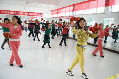 谷城县政协委员为培养不走的文化团队“献力” 5月8日,谷城县政协委员、文化馆馆长李春阁(右一)正在谷城县首期广场健身舞蹈培训班上,对各乡镇、开发区、社区业余文艺团队的领队和业务骨干进行示范培训。谷城县政协把促进城乡群众文化繁荣发展作为参政履职一个重要方向,通过建言献策、送文体器材进村、社区,集中、分散培训文艺骨干等形式,让全县130多个村、社区有了扎根的文化队伍。 本报视界网马明刚摄