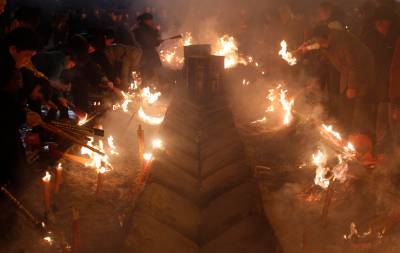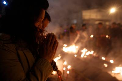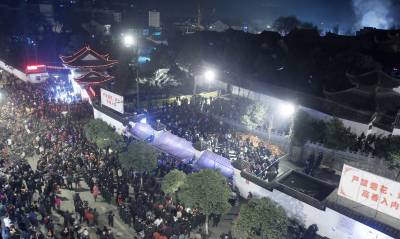 昨(18)日凌晨,武汉归元寺周边人山人海,来自武汉各城区的香客来到归元寺,以敬香”迎财神”的方式,为虎年祈福。由于安保措施得当,现场次序井然,约50余万市民到归元寺敬香、祈福。