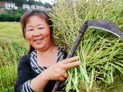5月10日,宜昌市夷陵区分乡镇分乡场村一留守妇女在收割沉甸甸的油菜时,脸上堆满了丰收的喜悦。 宜昌市夷陵区分乡镇在科技兴农活动中,大力推广油菜新品种、种植新模式,管理新举措,今年的2万亩油菜获得丰收,平均亩产可达到160公斤,比去年提高12公斤。(本报视界网 袁国悦摄)