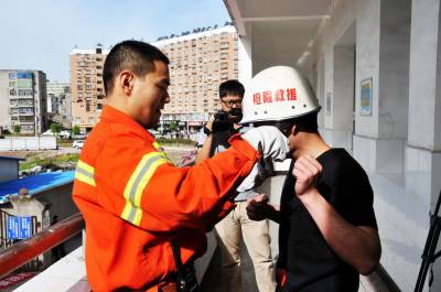 湖北沙洋:塔上“穿针引线” 消除线路隐患