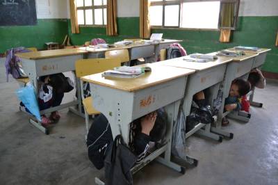 沉着演练 冷静逃生 (通讯员 杨显有) 5月10日,湖北省郧县柳陂镇和平岛小学举行的预防地震校园安全演练中,全校56名小学生正在老师的保护下撤离到安全地带,只用时20秒,比上月演练提高了宝贵的5秒,逃生过程井然有序,无踩踏事故,演练进一步提高了紧急避险、自救自护和应变能力。 (湖北省郧县柳陂镇中心小学 杨显有 442532 13277199605)