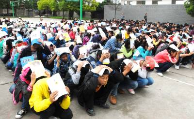 在“5.12防灾减灾日”来临之际,5月10日,南漳县2013年防震减灾人民防空应急疏散演练活动在城关镇金庙中学举行,全体师生参加了演练。 通过演练,使全体师生掌握了应急避震的正确方法,提高了全体师生应对突发公共事件下的应急反应能力和自救互救能力。(通讯员 晏光辉 张军 /摄)