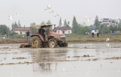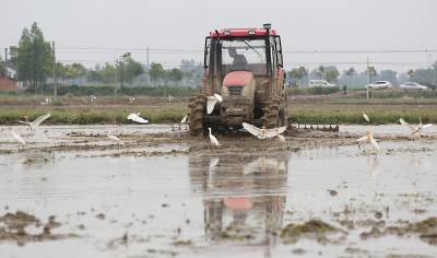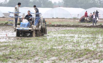 5月10日,湖北省沙洋县五里铺镇赵集村20多台插秧机来回穿梭,抢插中稻。目前,沙洋县抢抓季节,奋力抗旱保春播,组织3200台插秧机抢插中稻10余万亩,该县今年大力推广机械插秧,中稻机插率将达到35%以上。本报视界网朱舜 何长青 摄