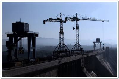 丹江口大坝,位于湖北省丹江口市,汉江中上游,是汉江流域最大的水利枢纽工程,为实现南水北调,2005年开始对丹江口大坝进行加高。1958年9月1日,丹江口水利枢纽工程举行开工仪式。1968年,丹江口水利枢纽工程第一台机组投产发电。1974年,丹江口水利枢纽初期工程全部完成。丹江口大坝加高工程于2005年9月开工,历经近8年的建设,目前大坝“长”高了近15米,从162米加高至176.6米。为了南水北调中线工程的顺利实施,大坝今后将蓄水至170米,比过去的蓄水水位抬高13米。在三峡工程之前,丹江口水库是长江流域控制作用最好、综合效益最大、功能最齐全的水利枢纽.