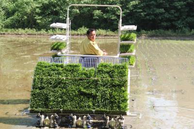 “田保姆”陈秀国 5月11日,全国种粮大户——冷集镇上集村农民陈秀国在帮乡邻们插秧。陈秀国在谷城农商银行连续3年贷款支持下,组建了兴农农机合作社,流转农民土地1110多亩,他的主要工作是帮农民整田、收割、育秧、插秧,现在又开始向农民传授农技知识。年收入20多万元。 本报视界网马明刚摄