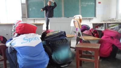 5月10日上午9时30分,急促的“地震警报”在全镇中小学拉响,正在上课的各个班级教师立即停止讲课,组织学生安全避险,只见学生们躲在各自的课桌下或课桌旁,然后转入紧急疏散演练环节,各班班主任带领学生们有序地从教室前门、后门撤离,沿着指定路线快速有序地撤到校园当中的学校操场安全地带。
