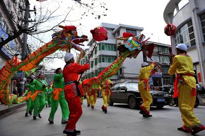 视界网签约摄影师:宋文。2月19日,游走在宣恩县城区的两条”巨龙”。元宵节前,两条龙将踏着春的脚步穿行在该县城乡,并与该县进入国家、省、州级非物资文化遗产名录的八宝铜铃、宣恩耍耍、滚龙连香等一道,为城乡居民送去节日文化盛宴。作者单位:宣恩县新闻中心联系电话:13986850929