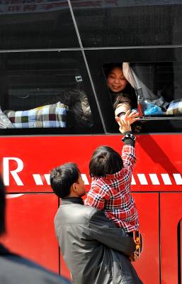 视界网签约摄影师:宋文。2月20日,宣恩县汽车客运站内显得拥挤不堪。该县每年约有7万人外出务工,随着又一个民工外出务工潮的来临,短暂团聚后的亲人们带着家的温馨,不得不又一次在车站这个地方,去面对一次亲情的撕裂。带着对故土和家人的深深眷恋,带着家人的嘱托,带着对美好生活的向往,还带着一丝对老人和孩子的愧疚,他们踏上了征程。作者单位:宣恩县新闻中心联系电话:13986850929