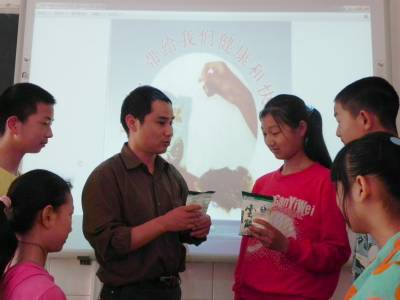 教给学生科学补碘 5月15日,十堰市郧县青曲镇初级中学开展防治碘缺乏病宣传教育活动,该校充分利用健康教育课、校园广播、主题班会等多种形式,广泛宣传碘缺乏病防治政策,普及碘缺乏病防治知识。当日是我国第20个“防治碘缺乏病日”,主题是“科学补碘,保护智力,成就梦想”。图为教师在向学生介绍食盐在预防碘缺乏病中重要作用。 (本报视界网 张传郧 摄)