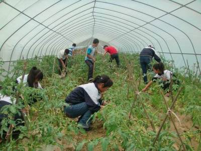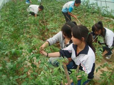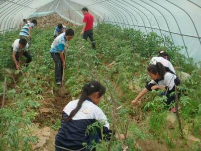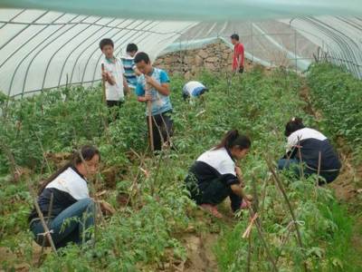 郧县农村学生学种大棚蔬菜