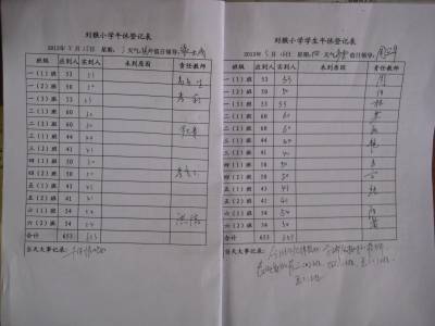 “班级人数都到齐了吗?有没有学生请假离校?”……,5月16日,宜城市刘猴小学值日教师在午休前对各班学生人数进行核对,并如实做好记载,这是该校狠抓学生午休纪律的一幕。