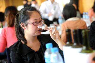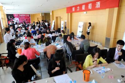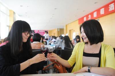 2013年5月16日,湖北经济学院,该校酒店管理专业学生品鉴法国波尔多的40瓶不同种类的珍酿葡萄酒,评选适合大学生口味的葡萄酒。