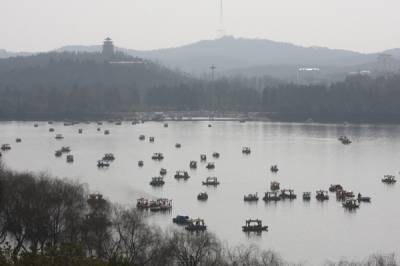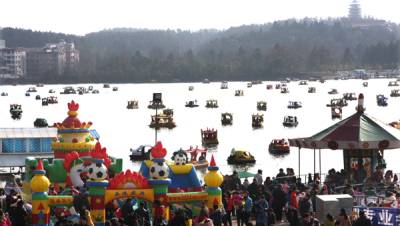 春到白云湖正月初五,随州城区白云湖游船如织,欢声笑语。水域中的游船像一”河”春饺闹腾开了。(本报视界网、随州日报记者杨闻名摄)电话:13872860263