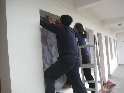 随着夏季到来,温度逐渐升高,为了防止蚊虫叮咬造成疟疾等传染病在寄宿学生中流行,保障学生健康,5月20日,宜城市刘猴小学请来专业人员,为全校6间学生宿舍统一安装了新式的双层防蚊纱窗,受到了寄宿生的欢迎。 (本报视界网 周卫华 摄)