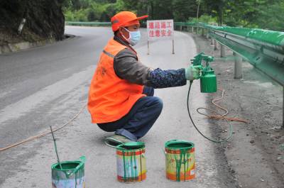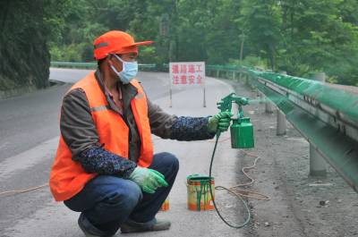 为国道涂上“安全色 ” 5月20日,工作人员正在为209国道护栏喷漆。 为确保交通道路安全,恩施市公路养护中心对209国道恩施至宣恩段道路护栏喷漆,使道路护栏颜色显示更为明显,增强司机识别能力,从而确保国道道路安全。 本报图片库 谢顺 摄 恩施市新闻中心 记者谢顺 13277590198
