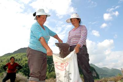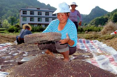 5月19日,来凤县大河镇白果树村村民张玉梅家在收获“阳光2009”丰产油菜。