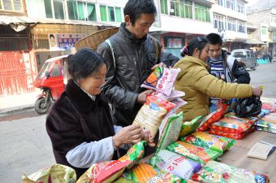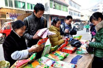 2月22日,村民们在恩施市红土乡红土集镇市场挑选玉米种子。”春节过到年十五。”这是昔日农民的习俗。然而,恩施市的很多农民却打破习俗,纷纷涌到农资经营市场采购春耕所需的种子、化肥、塑料薄膜等农资产品。由于认识到农资产品质量的好坏直接影响到农产品的增收增效,农民朋友在购买时对其商标、有效含量、说明书、厂址等也颇为仔细。