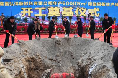 2月22日,湖北宜昌弘洋集团有限公司新建的硅酸钙板生产线项目正式开工奠基。该项目位于宜昌市夷陵区黄花乡建材工业园,拟建设年产6000万平方米硅酸钙板生产线,总投资5.31亿元。项目预计2010年10月建成投产后,年销售收入可达15.13亿元,安置劳动力就业1000人。硅酸钙板是一种新型轻质、高强且具有优良的耐火隔热性能的新型建材。