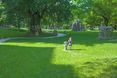 这是5月20日在一家公园拍摄到的场景,一位小朋友沐浴着阳光,正在尽情享受绿色带来的愉悦。