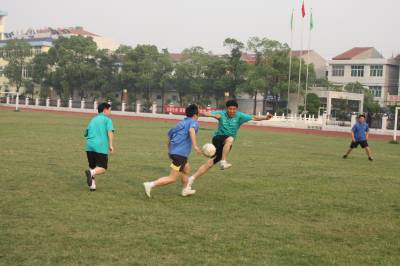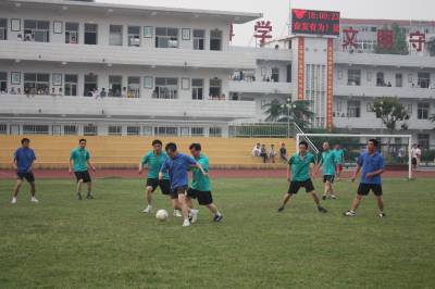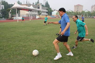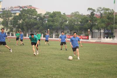 5月20日下午,钟祥市旧口高中塑胶运动场上一场足球赛正在激烈进行,对阵双方为该校的教职工。当日,该校为期一周的教职工足球联赛开赛。