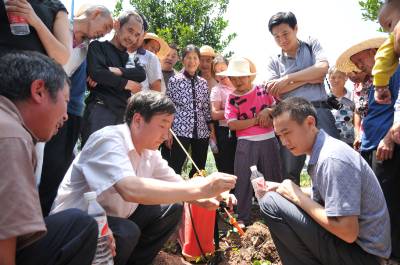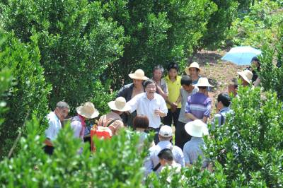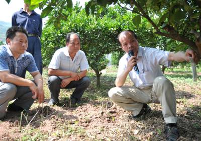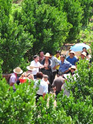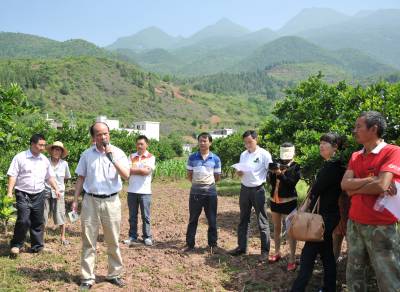 22日,林坚贞博士一行正向果农传授生物防治技术。 为了减少和避免果树喷洒农药,提高农产品品质,保护生态环境,生产绿色、健康的有机食品。21至22日,福建省农科院生物防治工程副主任、博士林坚贞先后来到巴东县溪丘湾、东瀼口、官渡口等乡镇,向果农传授果树“清园、放螨、留草、协调”八字方针,推广使用无毒、无公害的胡瓜钝绥螨,以捕食螨消灭害螨。据了解,林坚贞长期致力于果树生物防治技术研究,其成果“胡瓜钝绥螨”荣获2008年国家科技进步二等奖,享受国务院特殊津贴。(本报视界网 梁勇 摄)13986846069