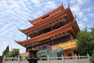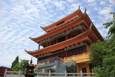 文佛山俗名鸡罩山,筐覆山,海拔710米。齐白石之高徒、我国当代著名大书画家杨鹤林先生游此留字称赞文佛山“高寻白云逸,秀夺五岳雄”。文佛山绝顶之古寺,源于唐,建于明,盛于清。自从明太祖朱元璋洪武年间修建文佛寺,距今已有600多年历史。相传清世宗顺治福临辍朝辞位,皈依佛门,出家五台山,云游江南名山,来此参禅挂箪。据史料记载,康熙皇帝曾微服寻父至此山,父子山崖相遇竟不相识,怅叹与父皇无缘。遂观山势,察地理,发现文佛山绝壁险要,体态独特,酷似一尊佛主,即命此山为文佛山,并传旨宜昌府拨库银扩建寺庙。历时八年,文佛山上的毗庐殿,祖师殿,三圣殿,云宫殿,斋善堂等庙宇琼楼相继落成,规模宏大,香气四溢。 山因佛而名,佛以山而盛。自此川东鄂西善男信女朝观不绝,学佛者众多。至今人气不断,香火旺盛。正如我国著名书画家胡岩大师游文佛山时挥毫所书:“文山净土储精萃,佛海圣地留佳音。”站在文佛山峰巅,不仅可以纵览文佛山旅游风景区全景,而且可眺望大半个宜昌市城区。尤其是晴空之夜,依稀看见宜昌市城区之星星点点,犹如身临太空,令人感慨苍穹。