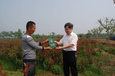 21日,云梦县林政资源管理股工作人员来到道桥镇洋湖村绿康馨苗木花卉生态农庄,将新办的林权证发放到农庄老板邱昌文(图左)手中。 今年以来,云梦县林业局大力开展了林业服务办证到田头活动,主动到全县各林业基地、林业生态农庄、林农家中为林业经营业主办理各类林业证照,为其合法经营、贷款融资提供法律保障,切实维护了林业经营业主的合法权益,先后开展上门办证服务活动12次,发放各类林业证照28起。视界网 陈保忠 何贵平 摄