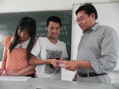 > 阳光发放寄宿贫困生生活补助金