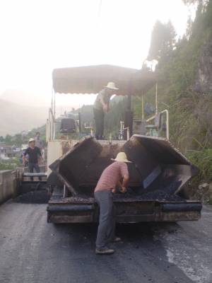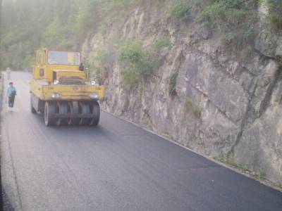 5月22日,由巴东县银路路桥工程有限责任公司承建的巴东县官渡口镇的太矶头集镇至老官渡口集镇的太官线油路摊铺工程今日正式开始摊铺。工地上,摊铺机、压路机忙过不停。 全长3.7公里的太官线,是连接官火线(官渡口至火峰)、官万线(官渡口至万流)、官庙线(官渡口至庙坪)至县城的咽喉,是官渡口镇20多个行政村走出大山的唯一通道通。油路的摊铺,不仅为来往车辆提供了可靠的安全保障,更有利于当地经济的提速。整个工程计划6月上旬竣工。(湖北图片库通讯员向国大摄)