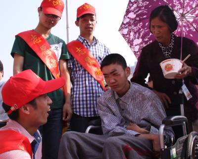 浠水县经济开发区南岳社区居民孔荣生于1979年,患有严重的先天性肢残,靠修理自行车、当建筑小工自食其力。2003年自己创办了“阳光书屋”供社会免费阅读,2008年将价值5万余元的图书无偿捐赠给所在社区农家书屋。他是浠水县志愿者协会、浠水红烛义工联盟核心成员之一。