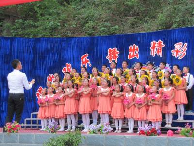 为喜迎六一儿童节的到来,5月23日下午,郧县鲍峡镇鲍家店中心小学举办了一场文艺演出。图为学校成立的“乡村少年儿童梦想合唱团”正在为大家放声高歌《我的中国梦》。